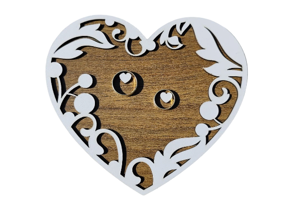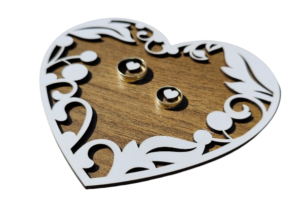 Toto drevené srdce na obrúčky je dokonalým doplnkom pre váš svadobný obrad. Vyrobené z kvalitného dreva, jeho elegantný dizajn dodáva svadobnej atmosfére jedinečný šarm. Tento podnos na svadobné obrúčky je nielen praktický, ale aj estetický prvok, ktorý sa stane krásnou spomienkou na váš veľký deň.