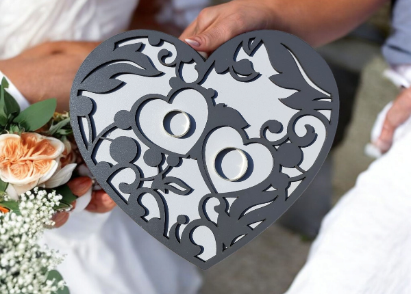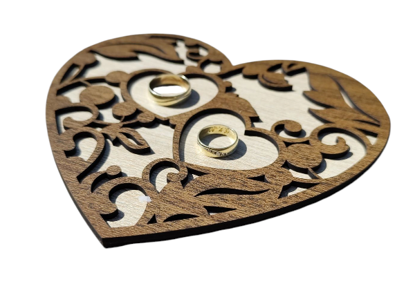 Drevené srdce na svadobné obrúčky – romantický detail pre váš veľký deň