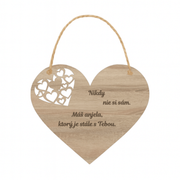 🏷️ Drevené srdce Nikdy nie si sám – anjelská drevená dekorácia s posolstvom viery ✨
