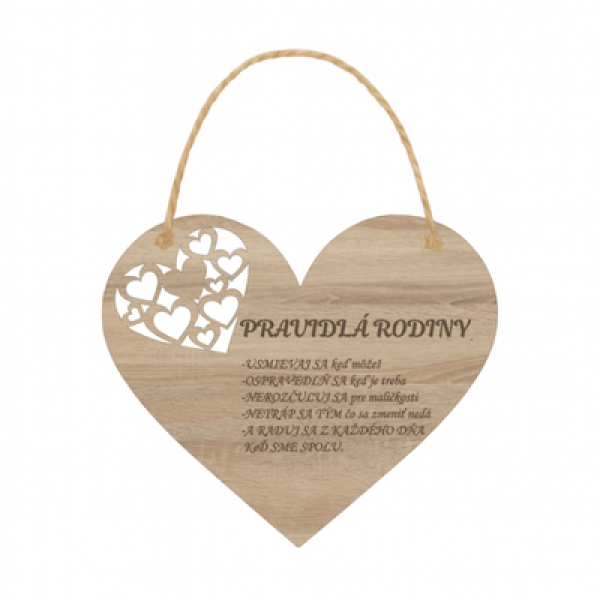 🏷️ Drevené srdce Pravidlá rodiny – srdiečko s láskyplným odkazom pre domov 🏡