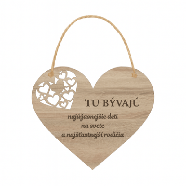 🏠 Drevené srdce – Tu bývajú najúžasnejšie deti a najšťastnejší rodičia prinesie do domova úsmev, teplo a rodinnú atmosféru. Vyrobené z kvalitného HDF dreva (3 mm) s gravírovaným textom, ktorý vystihuje radosť zo spoločného života.