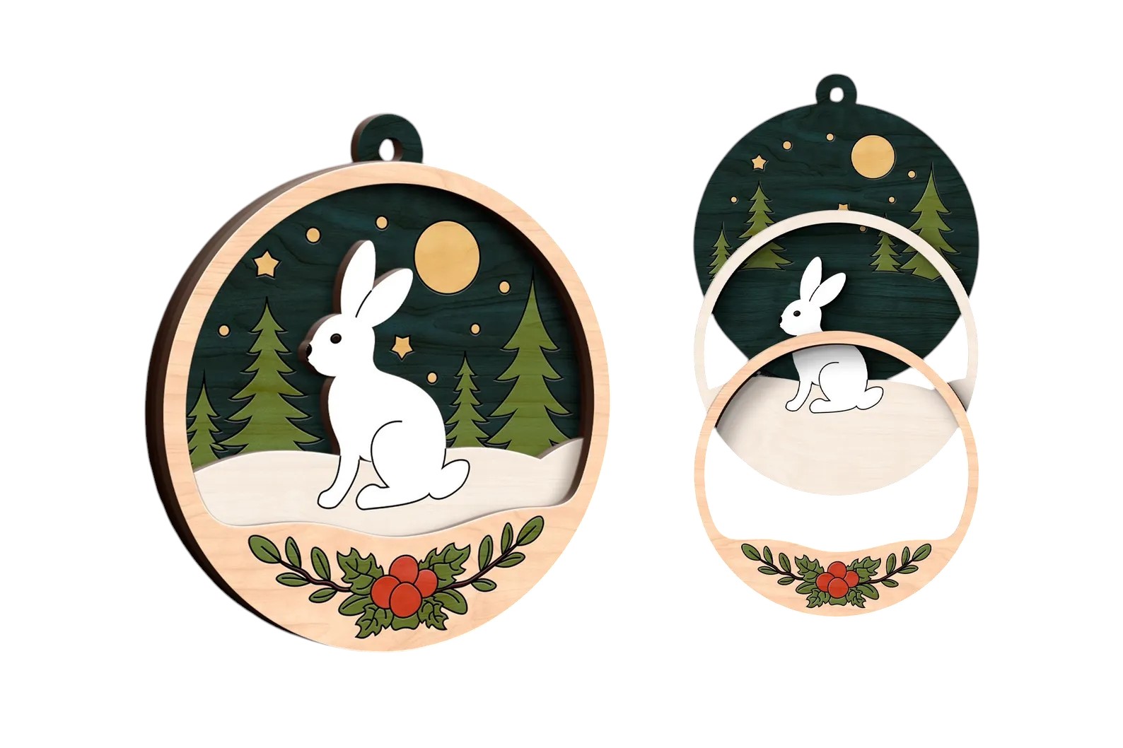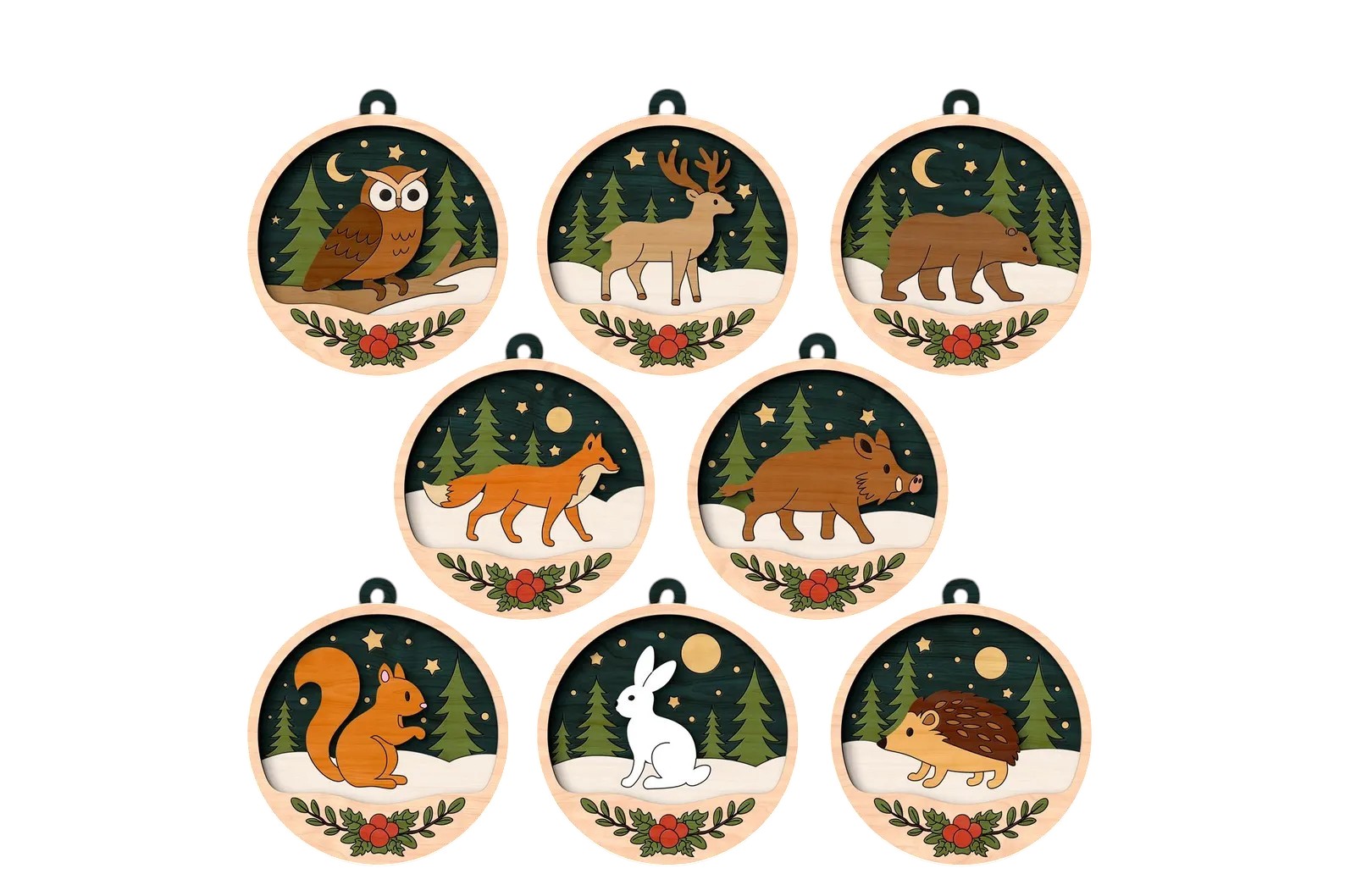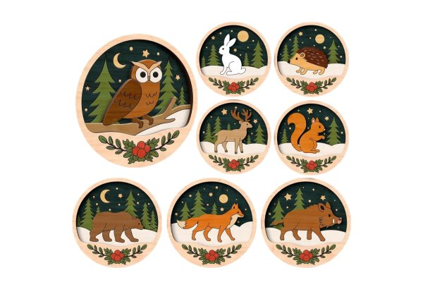 🌟 Drevené vianočné ozdoby na vymaľovanie – Lesné zvieratká (viacvrstvové) prinesú do vašej domácnosti originálnu a kreatívnu atmosféru. Každú ozdobu si môžete dotvoriť podľa vlastných predstáv – vyfarbiť akrylovými farbami, fixkami či pastelmi a následne zlepiť do krásnej 3D dekorácie.