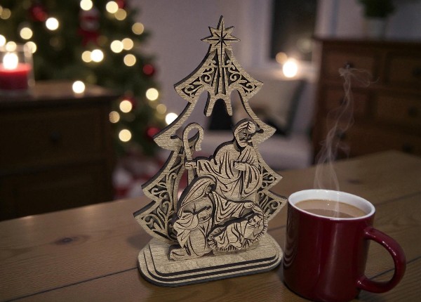 Tento drevený betlehem so Svätou rodinou vytvorí doma tú pravú vianočnú atmosféru, ktorá pôsobí tradične, hrejivo a elegantne. Betlehem je vyrezaný z kvalitného dreva s precíznymi detailmi – od jemných línií postáv až po dekoratívny tvar vianočného stromčeka a betlehemskú hviezdu.