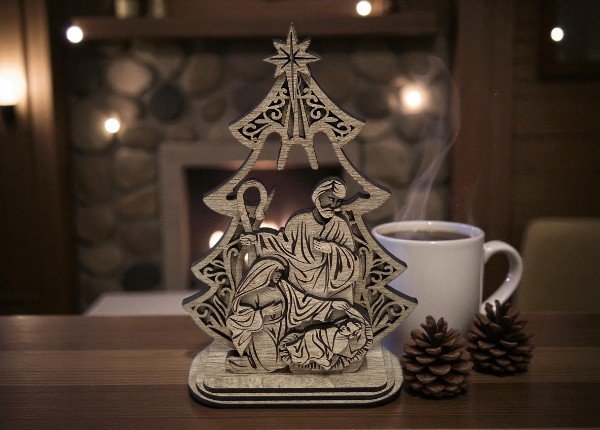 Drevený betlehem – Svätá rodina pod vianočným stromčekom