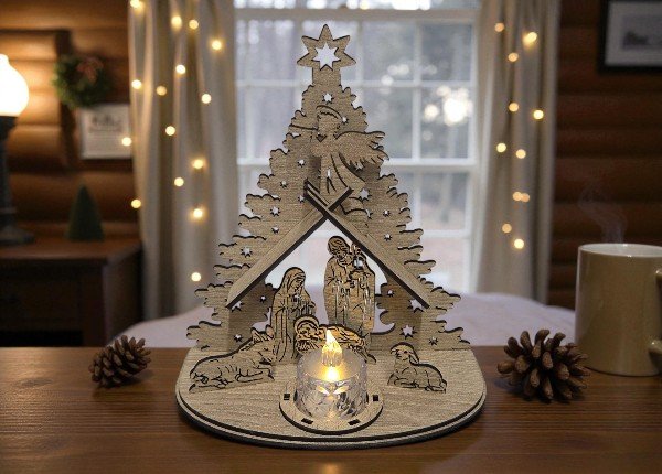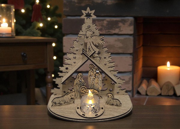 Betlehem je vyrobený z kvalitného dreva, precízne vyrezaný laserom a ručne dokončovaný. Vďaka stabilnému podstavcu stojí pevne, takže sa skvele hodí na poličku, stolík či k adventným dekoráciám.