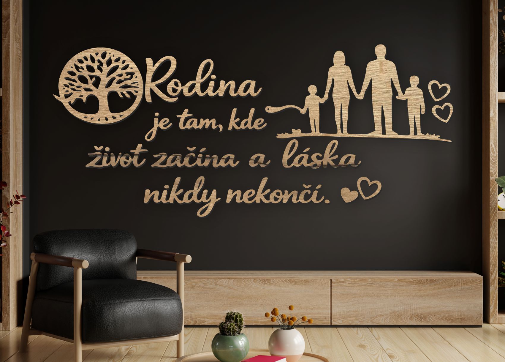 • Dizajn: citát so stromom života a siluetou rodiny