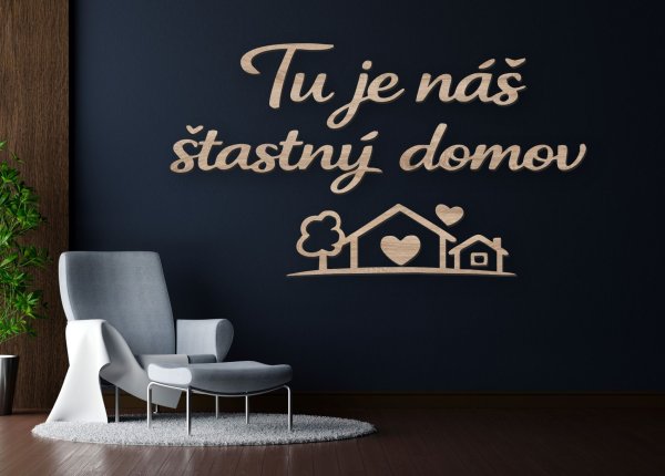 Tu je náš šťastný domov – drevený citát na stenu, ktorý v sebe nesie teplo, pokoj a pocit bezpečia. Tento jemný a zároveň výrazný dizajn okamžite premení každú miestnosť na miesto, kde sa budete cítiť skutočne doma.