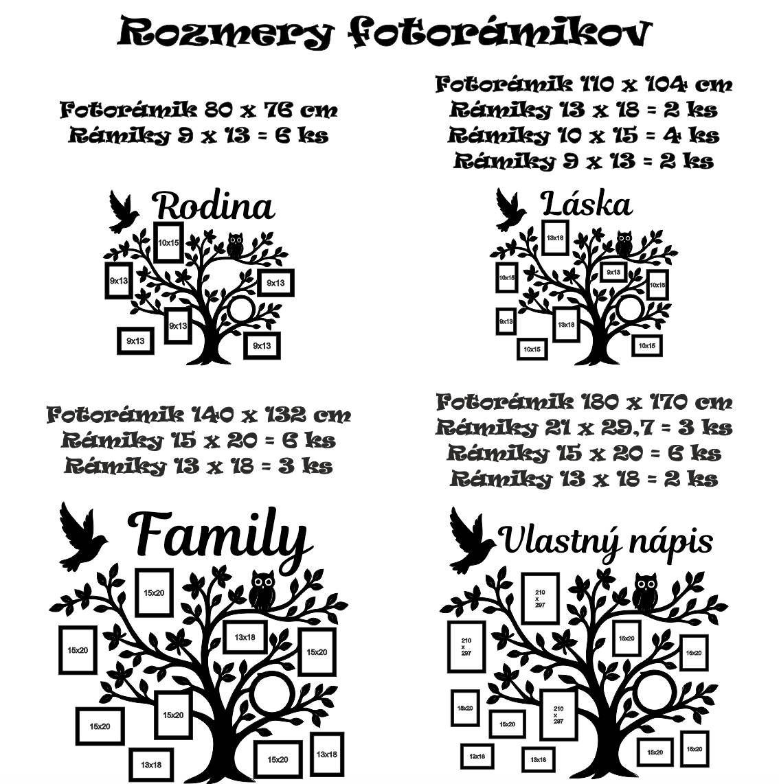 Rozmery fotorámika, rozmery jednotlivých fotorámikov aj ich presné rozloženie sú zobrazené na fotografiách v galérii produktu. Tento fotorámik vyrábame vo viacerých veľkostiach, aby si zákazník mohol zvoliť variant, ktorý najlepšie vyhovuje jeho priestoru. Konkrétnu veľkosť si zákazník vyberá vo variantoch produktu.
