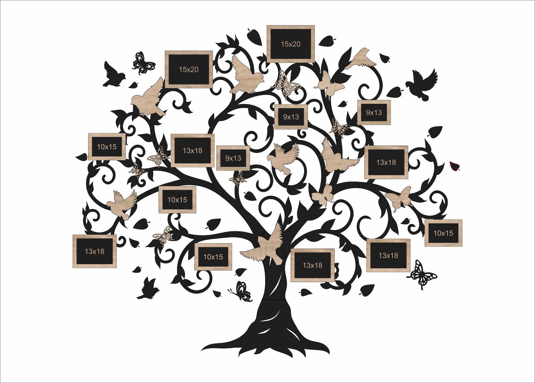 Fotorámik je vyrábaný v jednom štandardnom rozmere, ktorý je zobrazený v galérii. Na zákazku je však možné upraviť veľkosť stromu alebo jeho proporcie podľa individuálnych požiadaviek, aby dekorácia lepšie zapadla do konkrétneho priestoru.