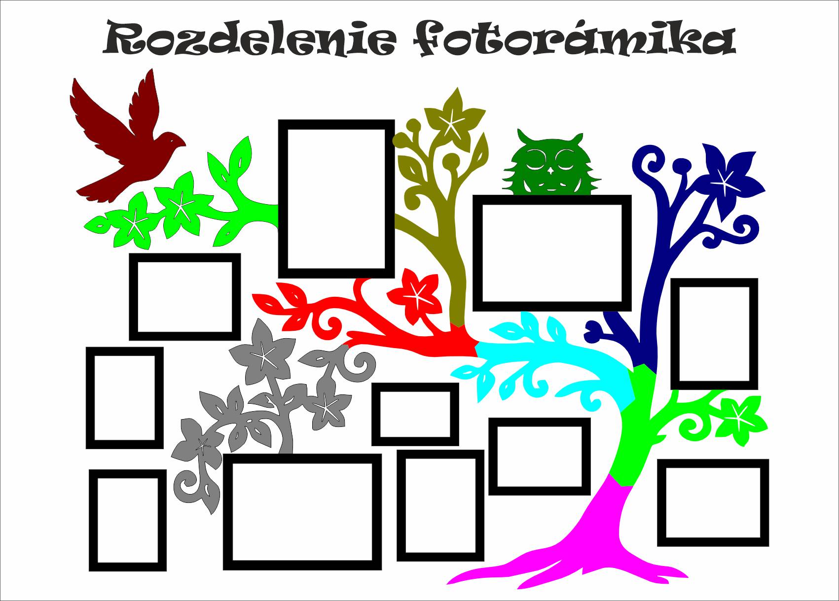 Rozmery jednotlivých fotorámikov a ich rozloženie sú zobrazené na fotografiách v galérii produktu. Tento model vyrábame vo viacerých veľkostiach, aby si zákazník mohol zvoliť variant podľa veľkosti steny a priestoru.