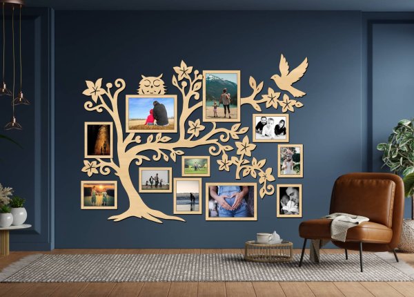 Tento nástenný fotorámik na viac fotiek umožňuje vystaviť rodinné fotografie prehľadne a esteticky priamo do konárov stromu. Každý rámik má svoje miesto, vďaka čomu dekorácia pôsobí vyvážene a prirodzene zapadne do interiéru.