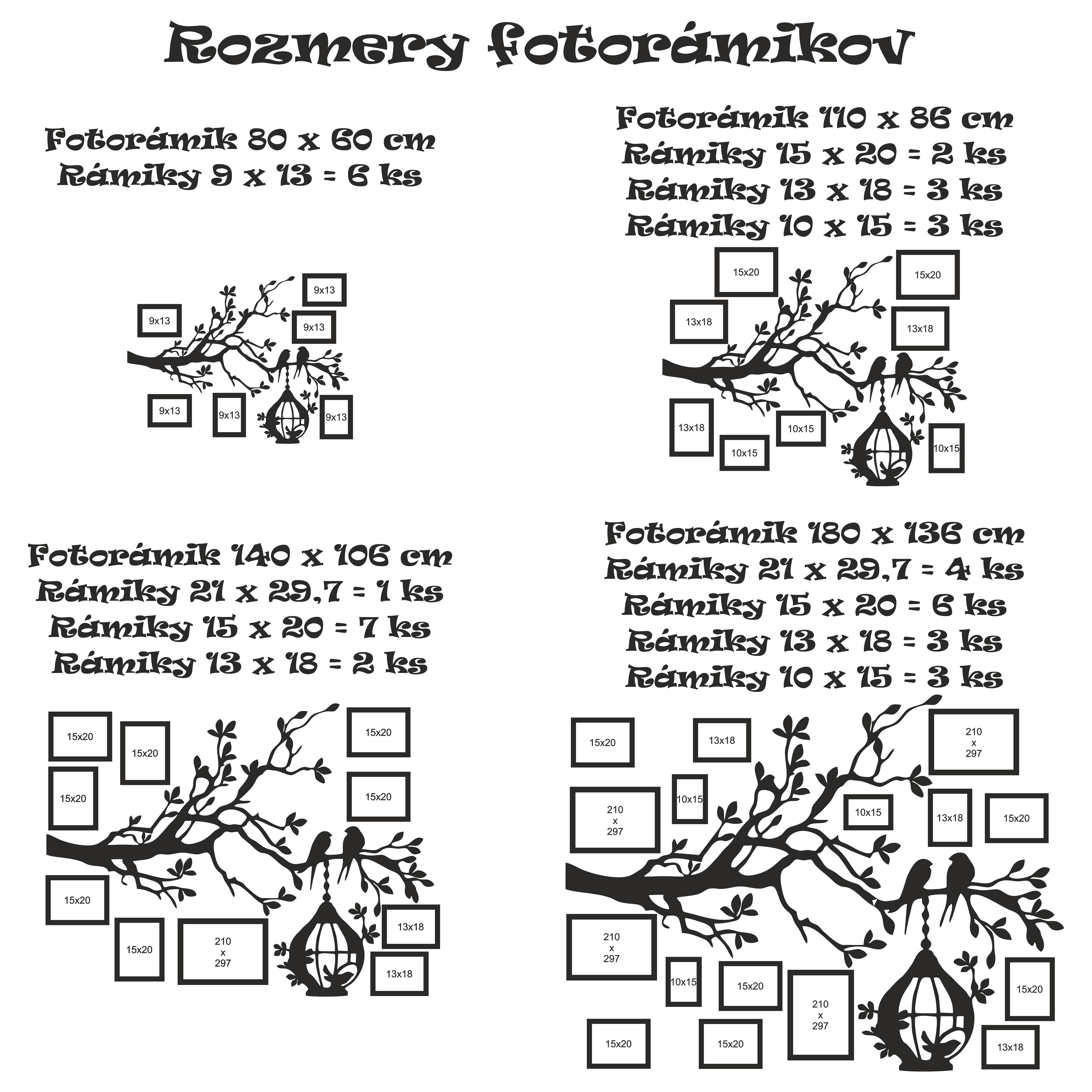 • rozmery fotorámikov a veľkosti fotografií sú zobrazené v galérii