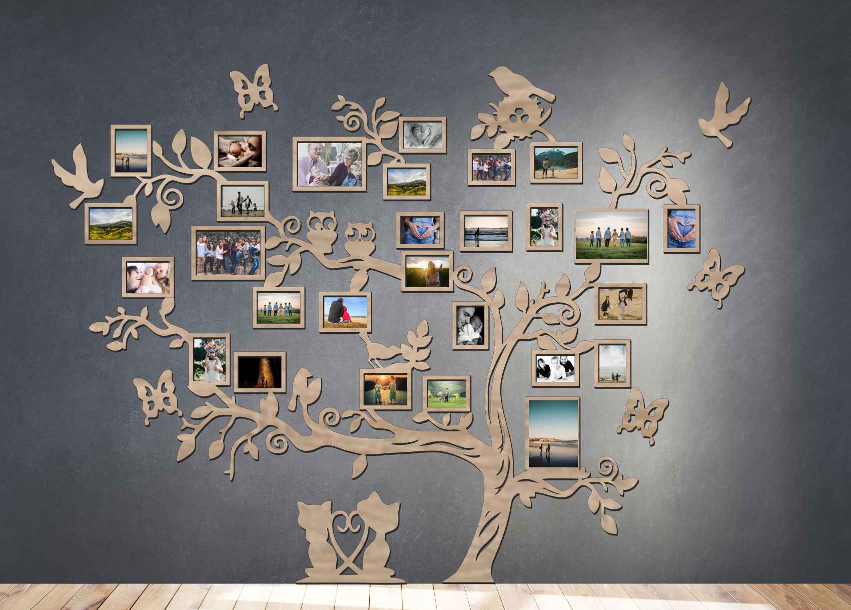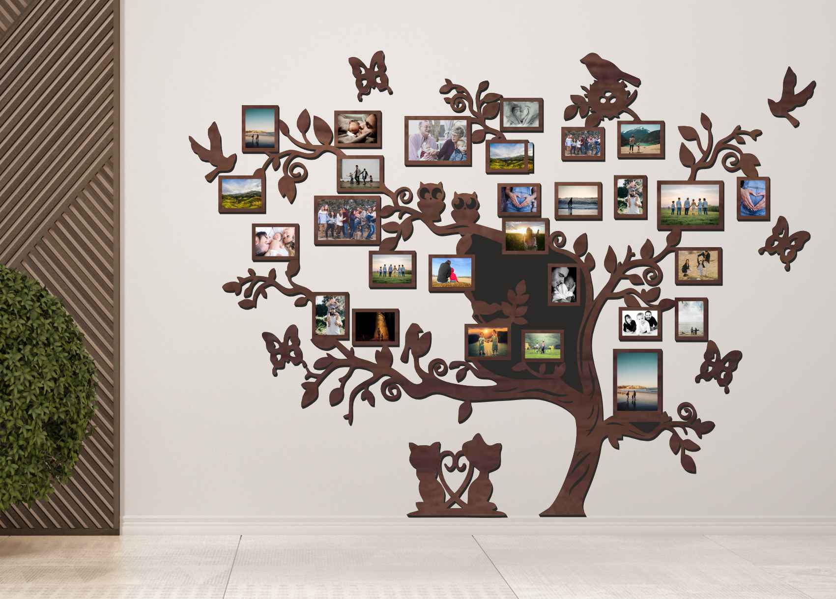 Drevený fotorámik na stenu - Strom so zvieratkami: Premeňte svoje spomienky na umelecké dielo!