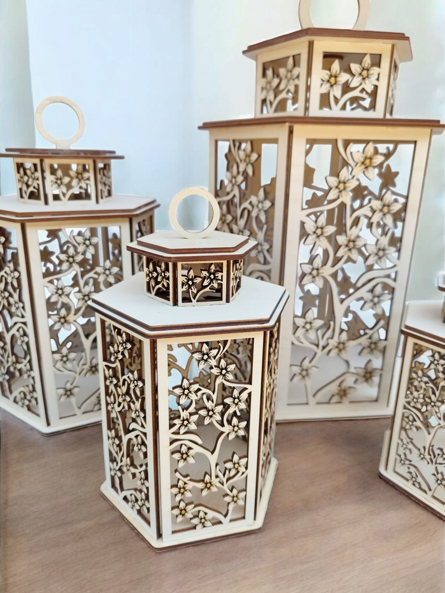 Vneste do svojho domova jemnú krásu prírody s týmto dreveným lampášom, ktorý je zdobený nádhernými kvetinovými motívmi. Tento vyrezávaný lampáš je dokonalým spojením tradičného remesla a moderného dizajnu, vďaka čomu sa stane elegantným doplnkom vášho interiéru či exteriéru.