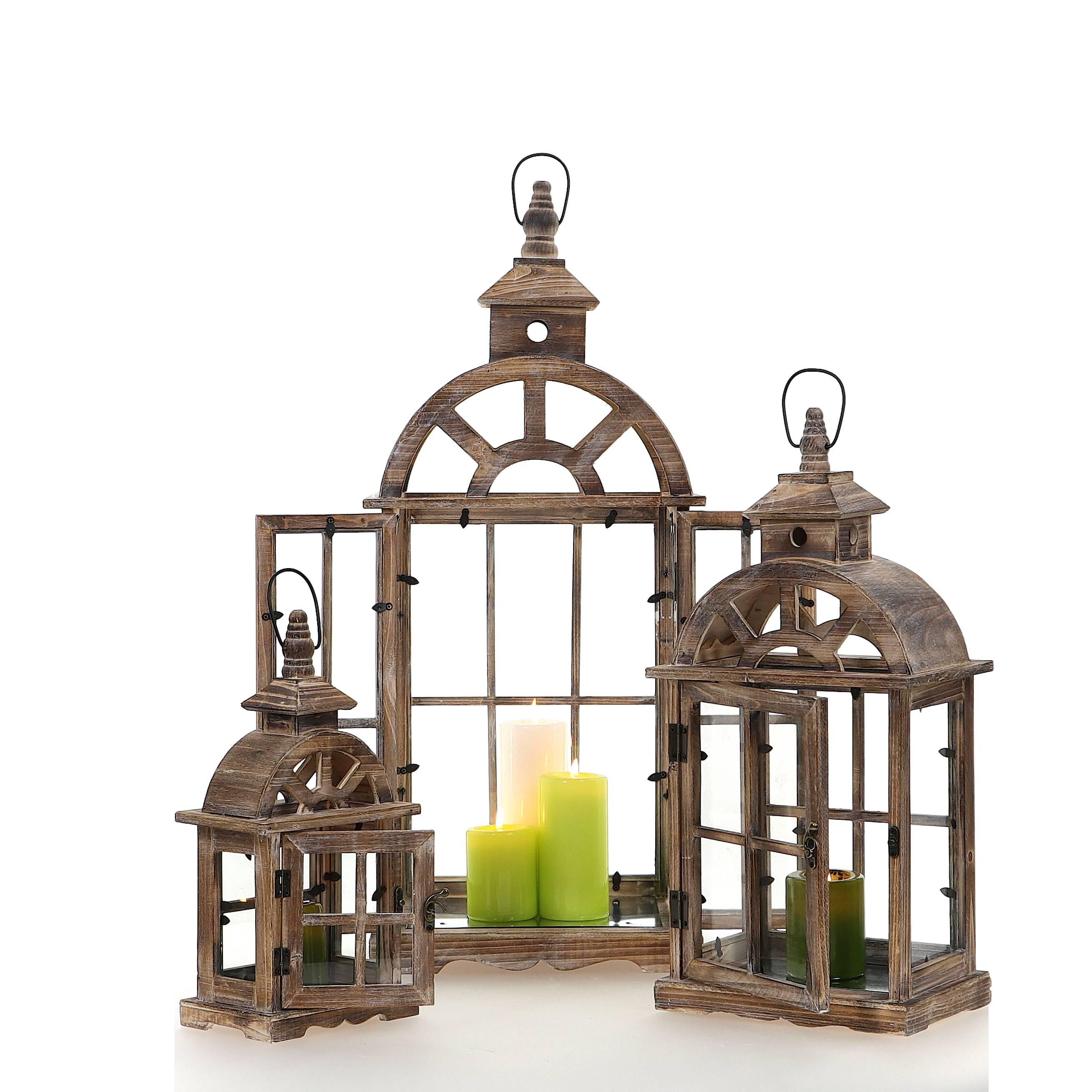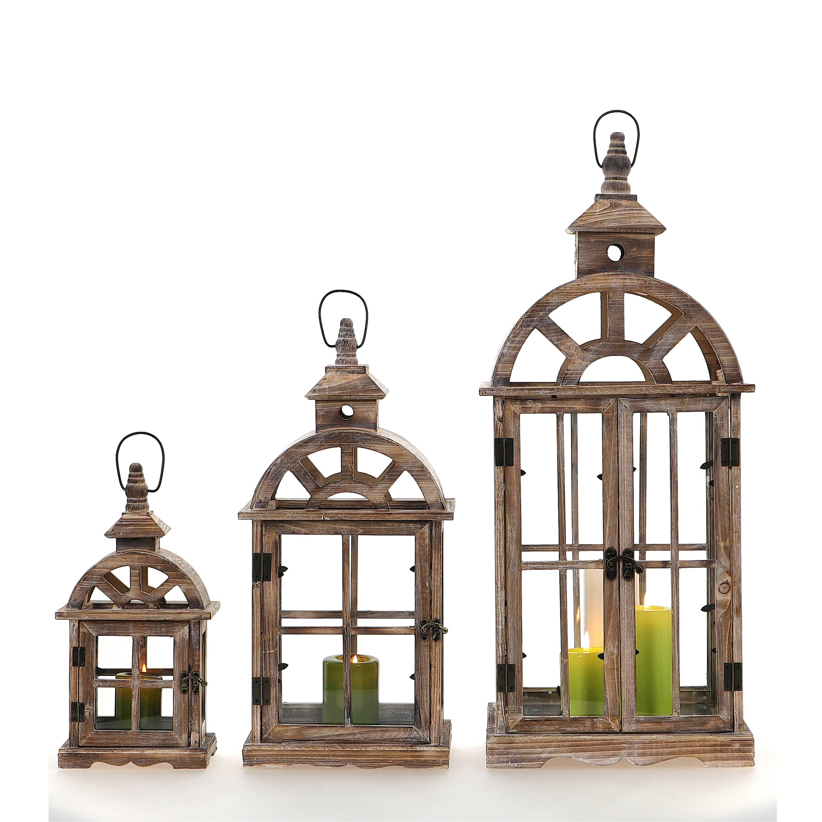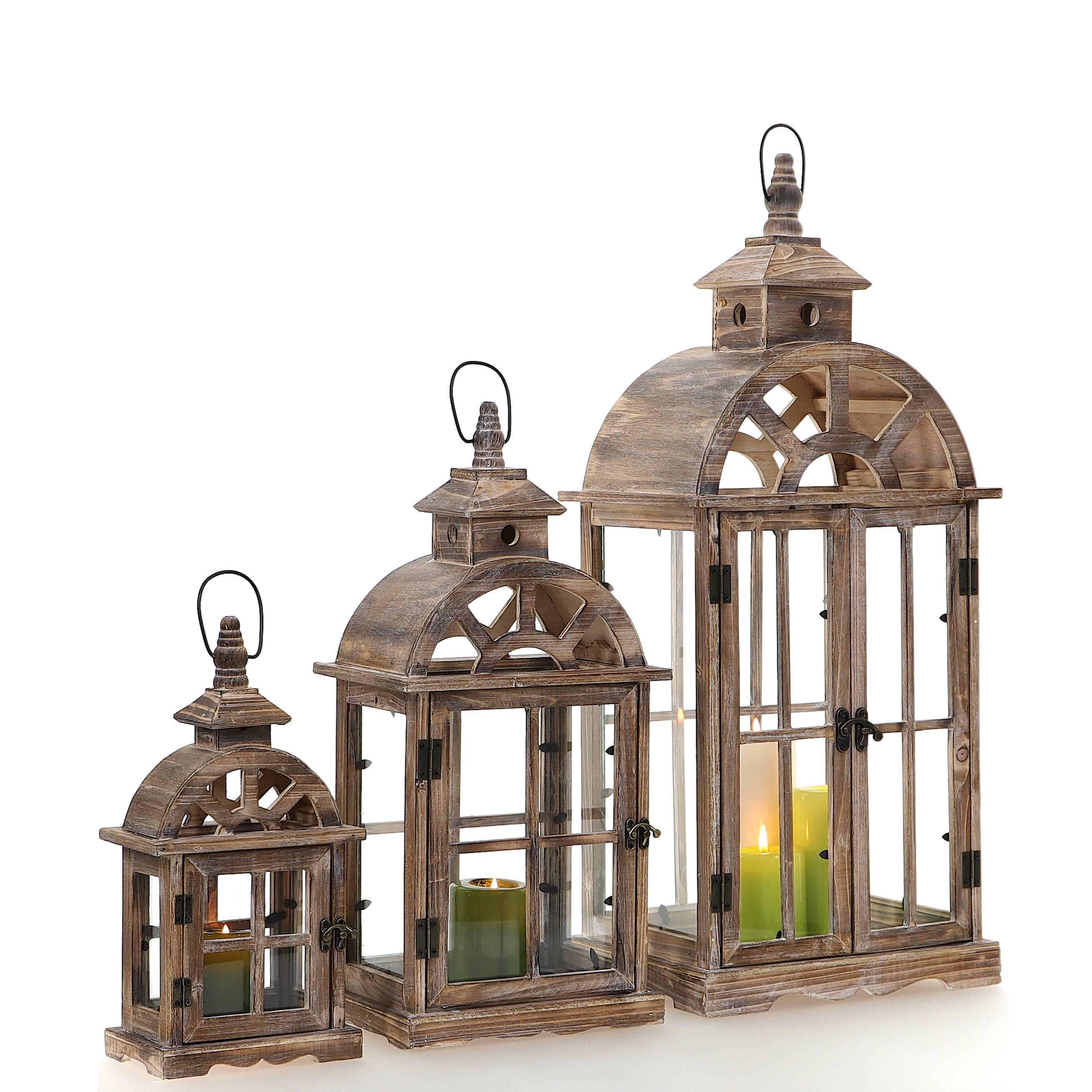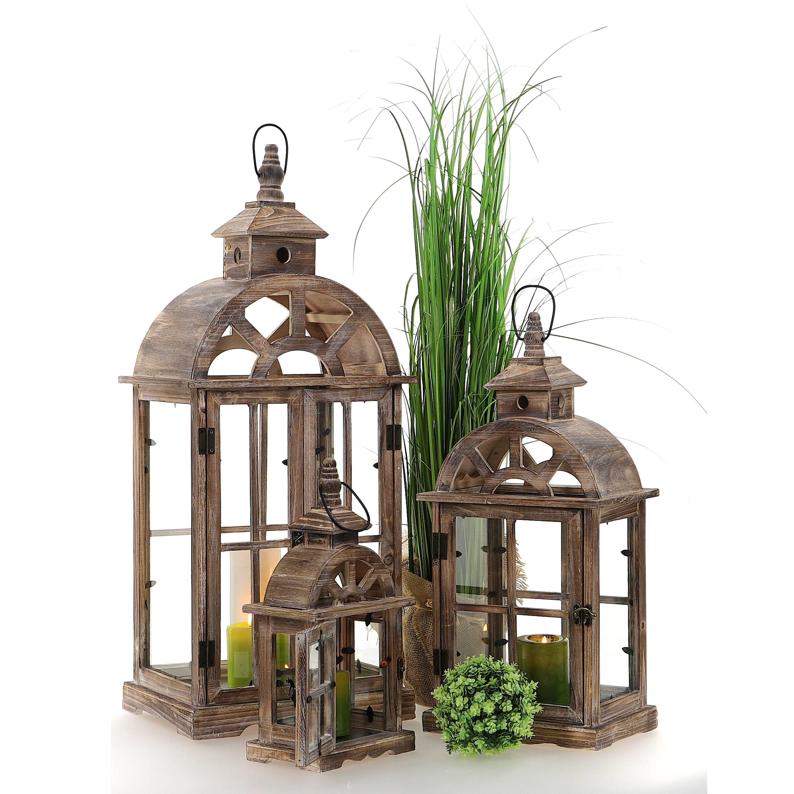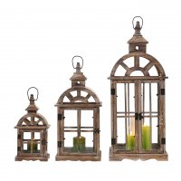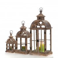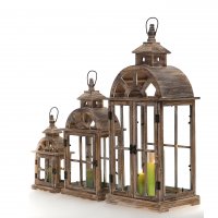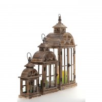 Drevený lampáš hnedej farby je originálnou dekoráciou do domácnosti či interiéru alebo exteriéru.