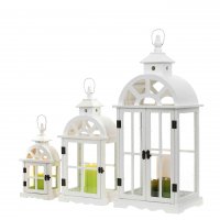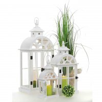 Drevený lampáš bielej farby je originálnou dekoráciou do domácnosti či interiéru alebo exteriéru. Do dreveného lampáša odporúčame elektrické sviečky, prípadne sviečku nie s veľkým ohňom.