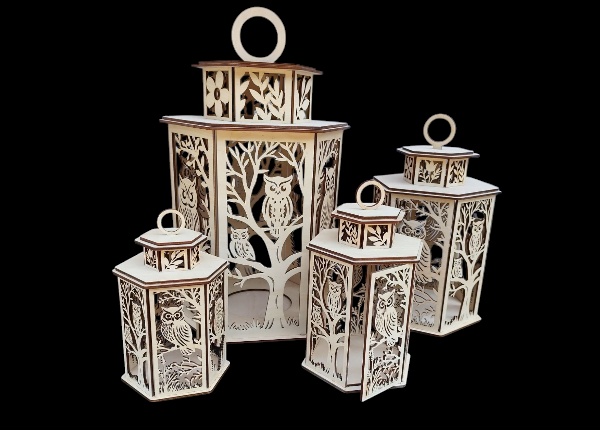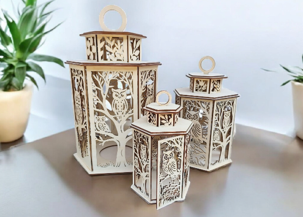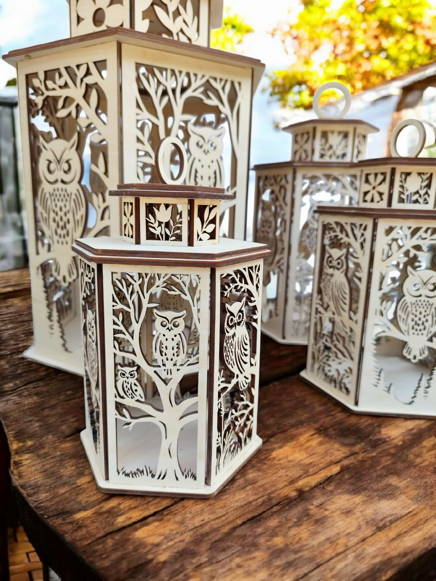 Soví drevený lampáš – kúzlo svetla v prírodnom dizajne
