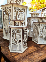 Objavte jedinečný drevený lampáš v podobe múdrej sovy, ktorý dodá vášmu domovu čarovnú atmosféru. Tento vyrezávaný lampáš je dokonalou kombináciou tradičného remesla a moderného dizajnu. Vďaka precíznemu spracovaniu dreva a detailnému vyrezávaniu vytvára nádherné svetelné efekty, ktoré zútulnia každý priestor.