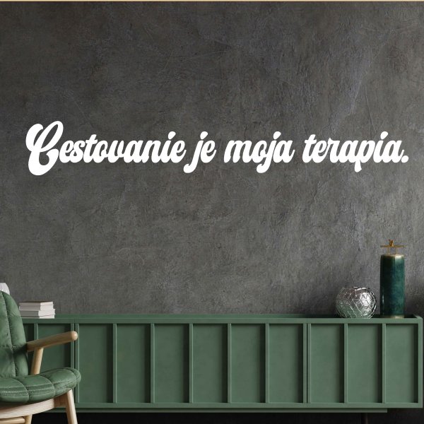 Drevený nápis na stenu - Cestovanie je moja terapia.