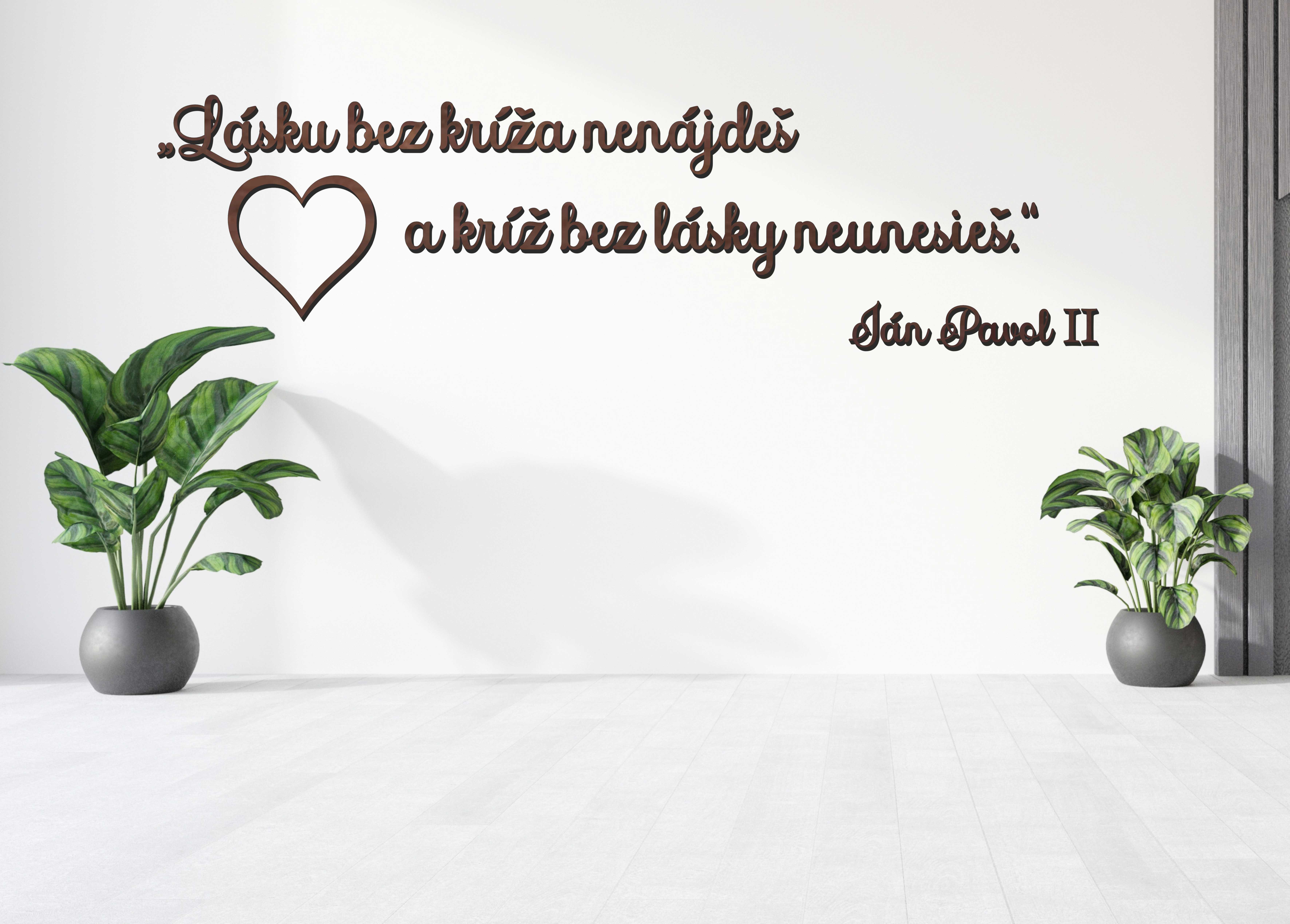 Predstavujeme Vám náš krásny Drevený nápis na stenu - Lásku bez kríža nenájdeš a kríž bez lásky neunesieš, ktorý prinesie do Vášho domova nielen estetický pôvab, ale aj hlboký význam. Tento nádherný kúsok je vyrobený z kvalitného HDF dreva, čo zaručuje jeho dlhú životnosť a elegantný vzhľad.