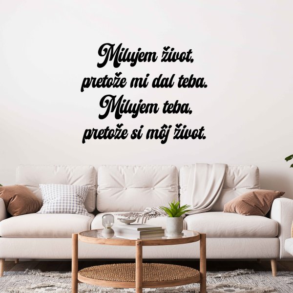 Drevený nápis na stenu - Milujem život, pretože mi dal teba. Milujem teba, pretože si môj život.