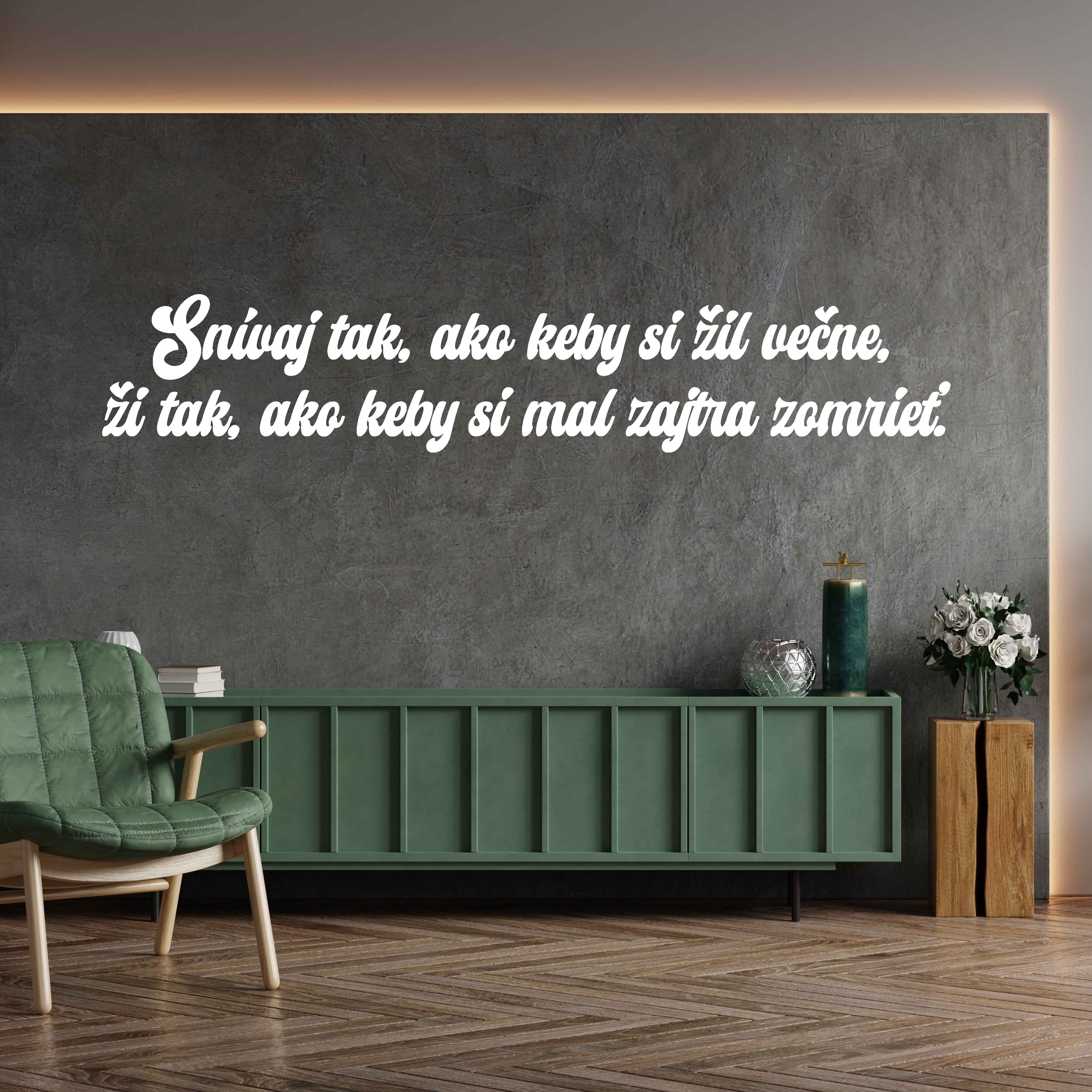 Drevený nápis na stenu - Snívaj tak, ako keby si žil večne, ži tak, ako keby si mal zajtra zomrieť.