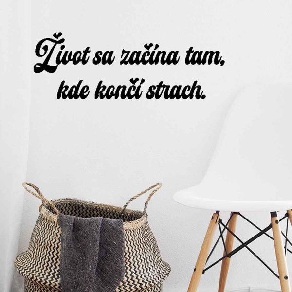 Drevený nápis na stenu - Život sa začína tam, kde končí strach.