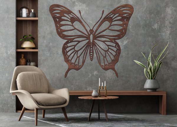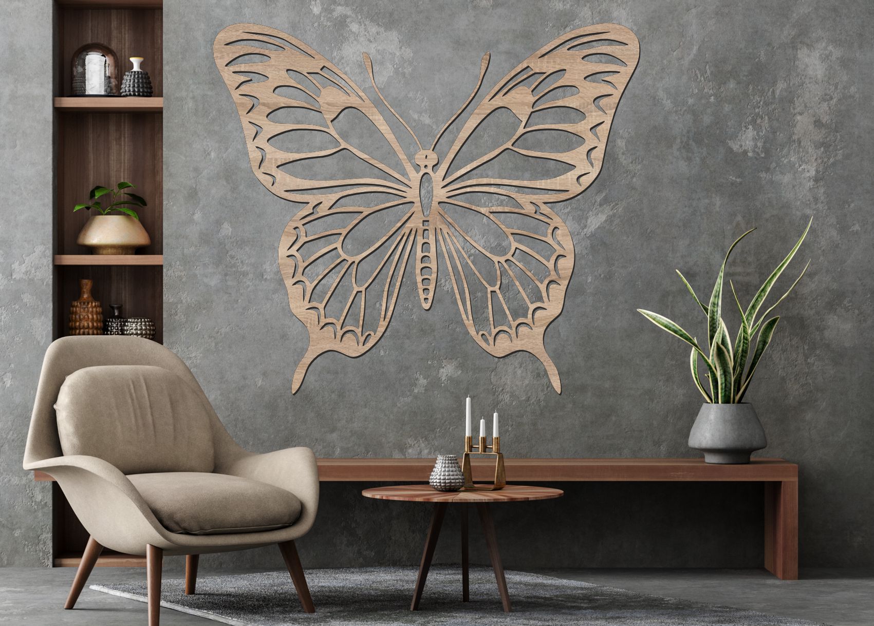 Drevený obraz elegantného motýľa – jemná dekorácia s detailným vzorom