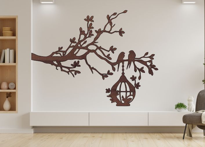 Drevený obraz vtákov na konári – moderná prírodná dekorácia