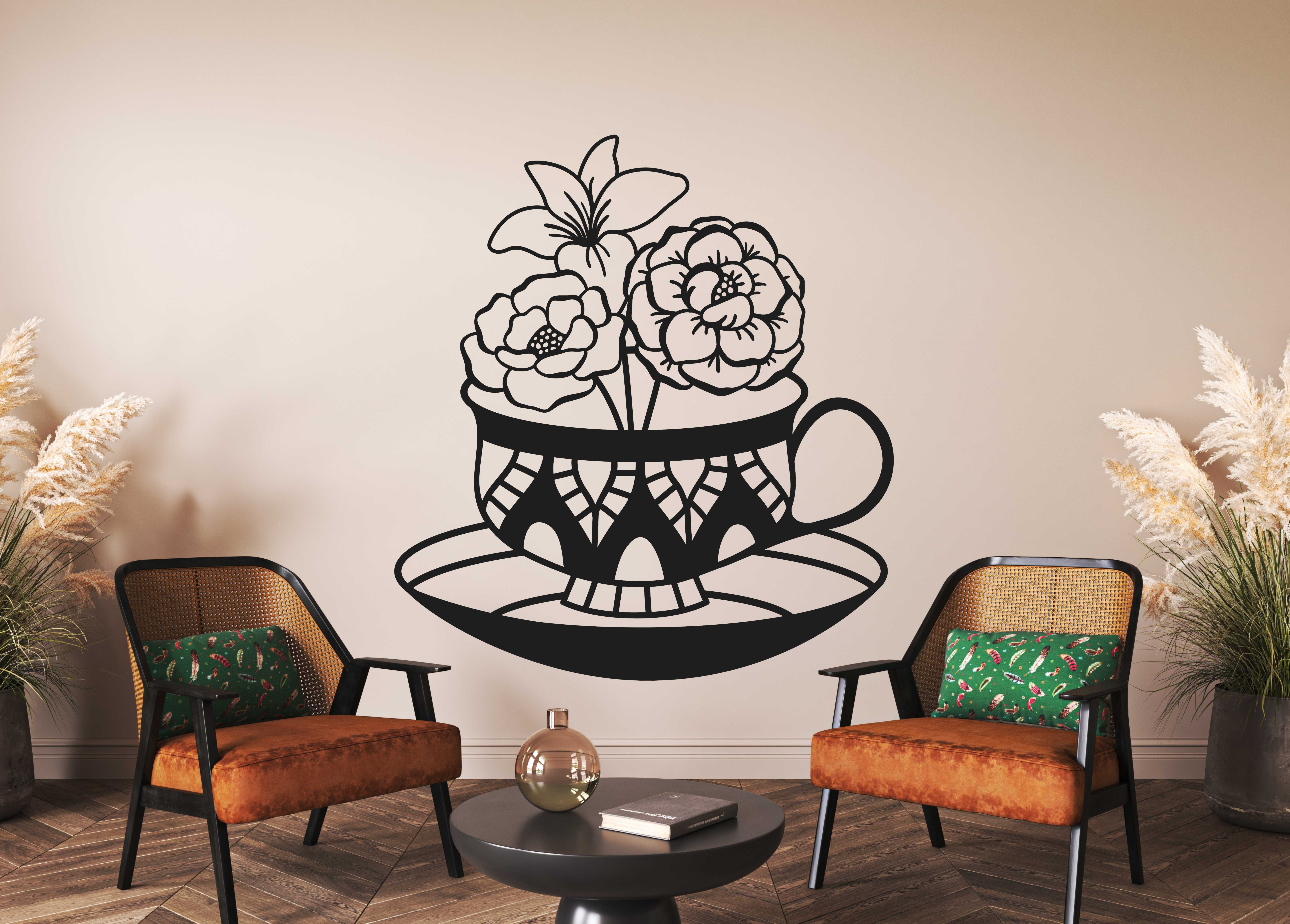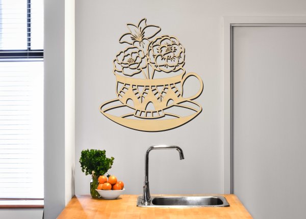 Drevený obraz na stenu - Hrnček s kvetmi