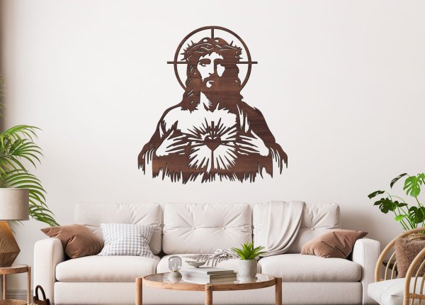 Tento duchovný drevený obraz zobrazuje Ježiša Krista s tŕňovou korunou a žiariacim srdcom – symbolom lásky, obety a viery. Sacred Heart (Sväté Srdce) predstavuje oddanosť a duchovnú silu, ktorú prináša do každého domova.