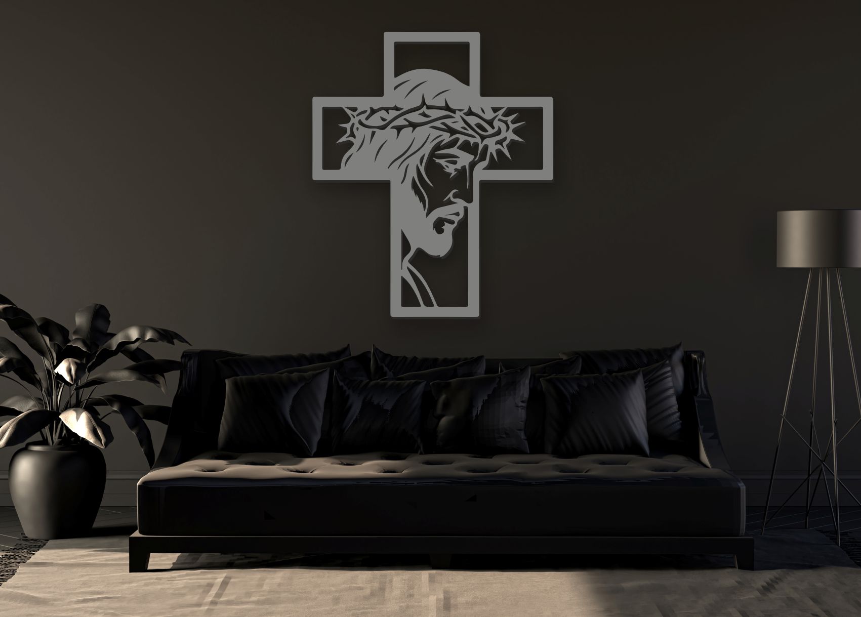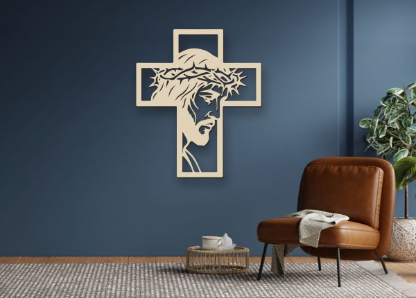 Minimalistický dizajn v spojení s krížom vytvára moderný a nadčasový vzhľad. Precízne laserové rezanie zvýrazňuje detaily tváre, tŕňovej koruny aj celkových línií obrazu.