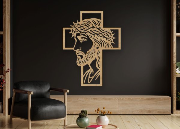 ✨ Drevený obraz Ježiš na kríži profil je elegantná kresťanská dekorácia na stenu v prírodnom drevenom dekore, ktorá zobrazuje Ježiša Krista v bočnom profile s tŕňovou korunou. Tento silný motív symbolizuje vieru, pokoru, nádej a duchovnú ochranu.