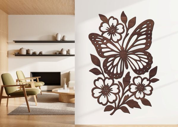 Precízne vyrezávaný z kvalitného HDF dreva, obraz vynikne v každej miestnosti – od spálne až po obývačku. Motív motýľa medzi kvetmi pôsobí harmonicky a romanticky, ideálny aj ako darček pre blízku osobu.