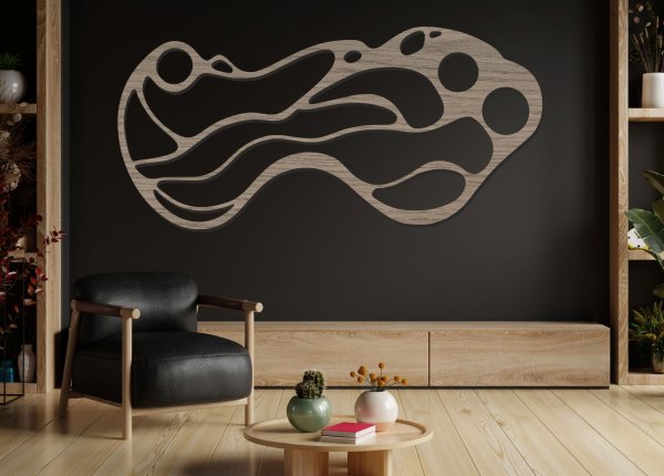 Drevený obraz na stenu – moderná abstrakcia organických tvarov je výrazná dizajnová dekorácia, ktorá dodá priestoru moderný, elegantný a jedinečný charakter. 🌿