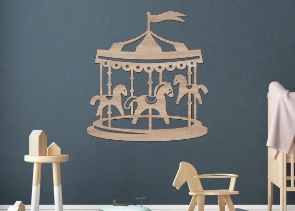 Klasický motív kolotoča symbolizuje pohyb, hravosť a fantáziu, vďaka čomu sa skvele hodí do detskej izby, herného kútika či ako milý darček pre dieťa.