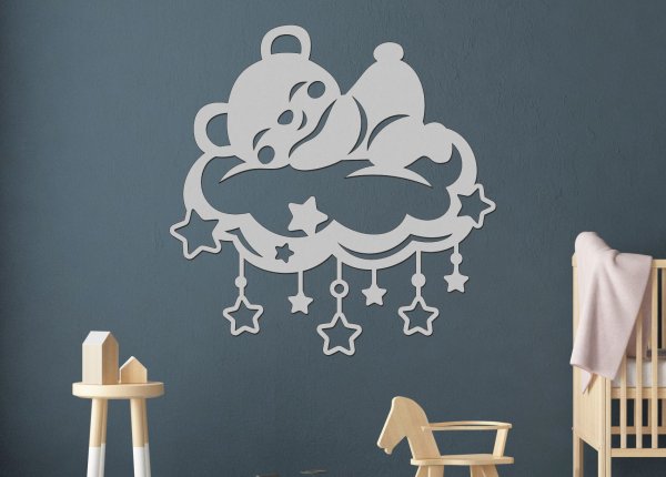 Tento drevený obrázok s motívom spiaceho macka na oblaku v sebe ukrýva nežnosť, pokoj a bezpečie – presne to, čo chceme pre detskú izbu.