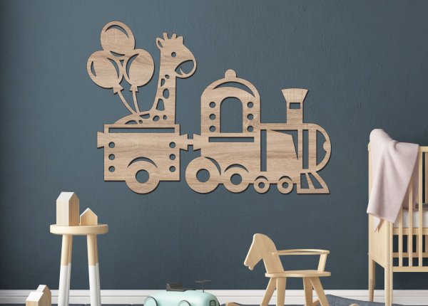 Drevený obrázok do detskej izby – vláčik so žirafou