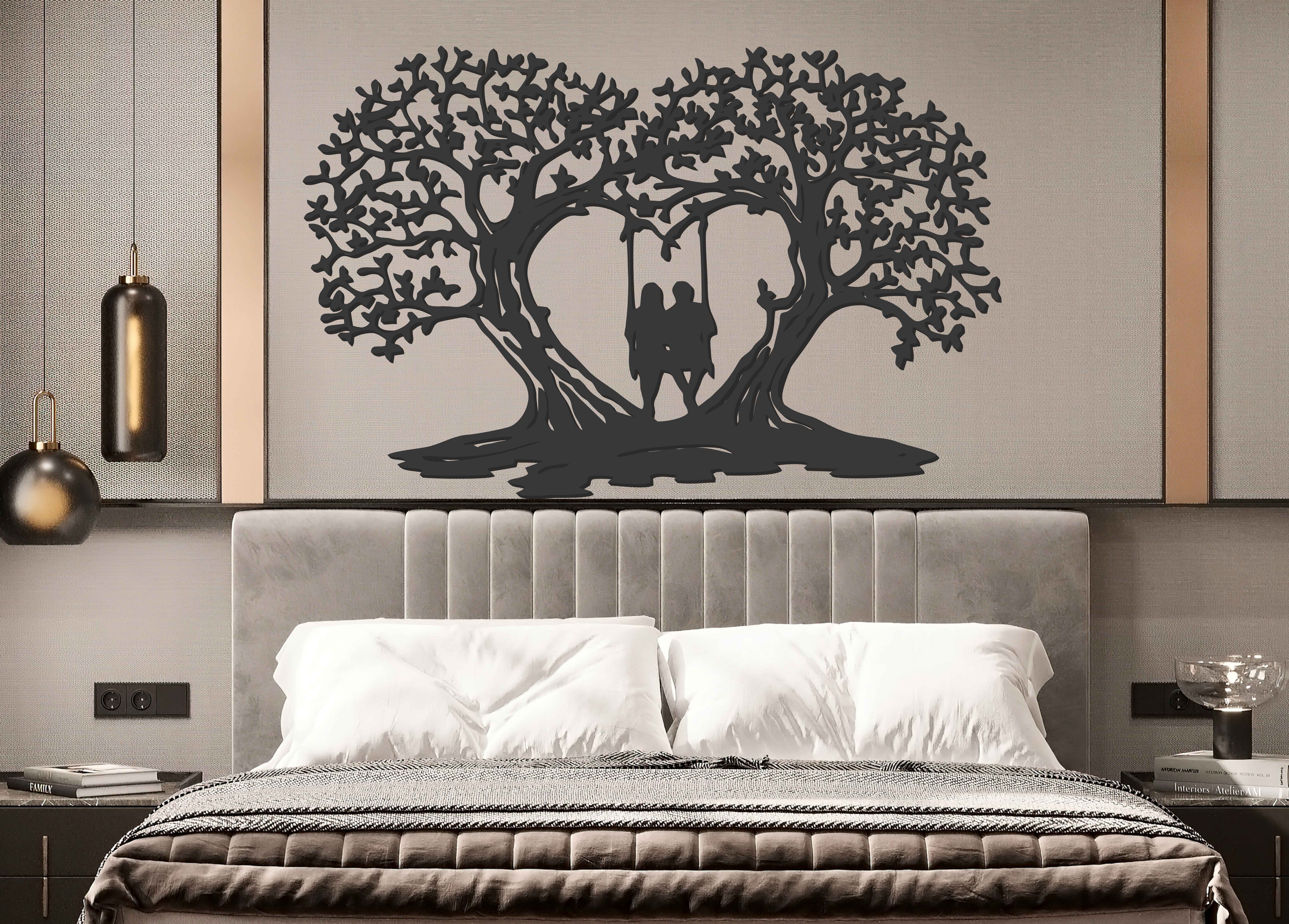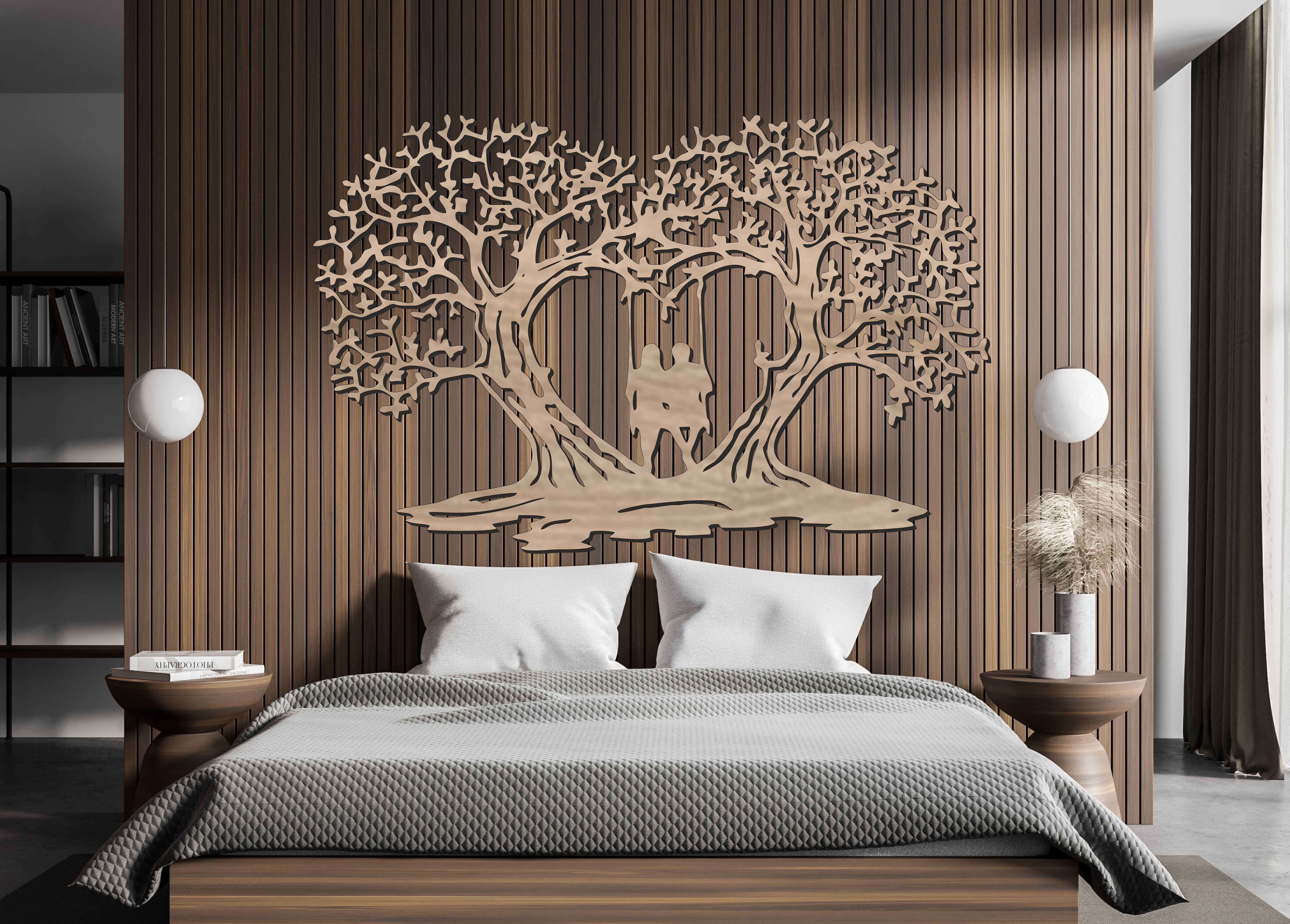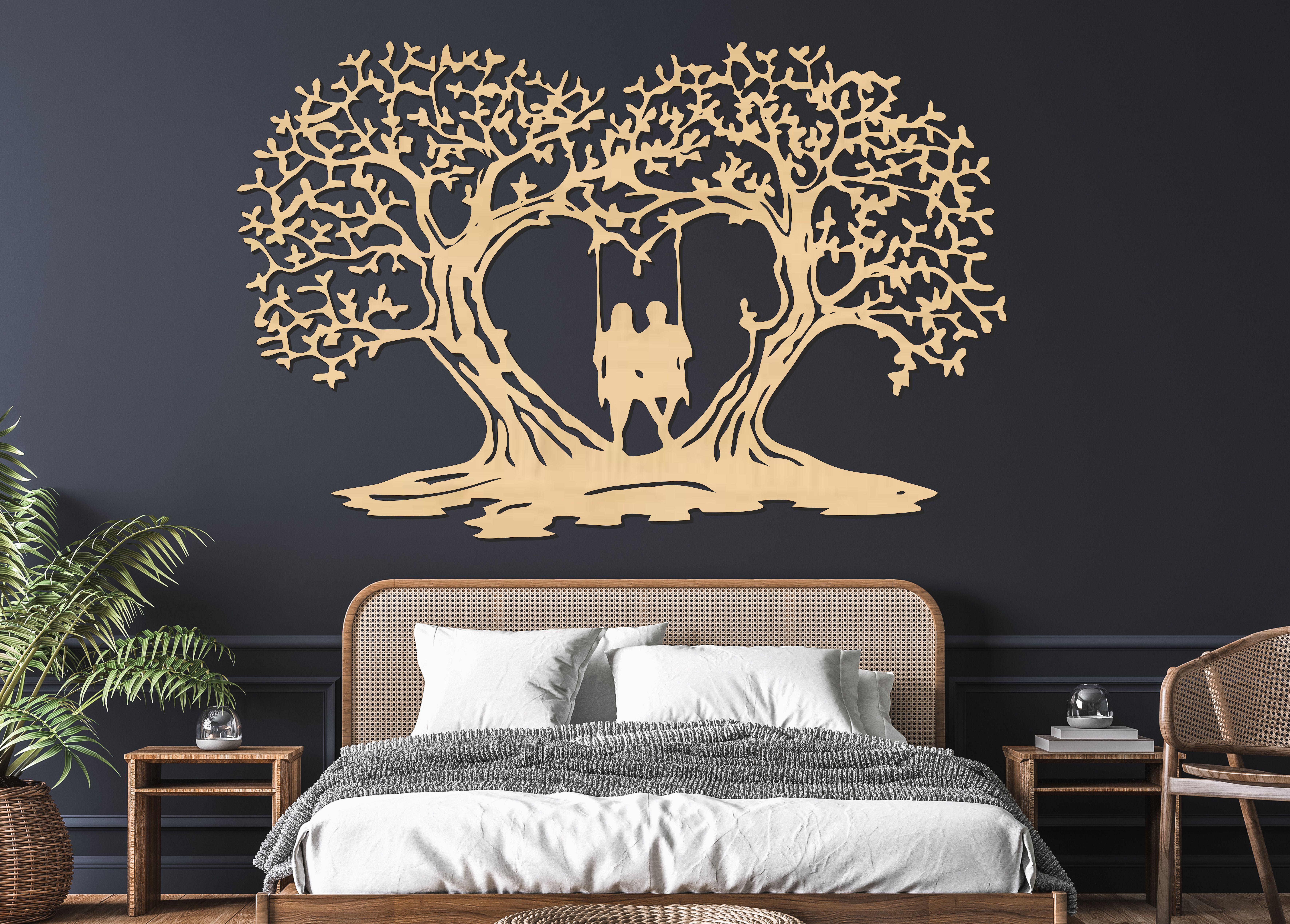 Drevený strom na stenu - Pár na hojdačke: Príbeh lásky vo vašom domove