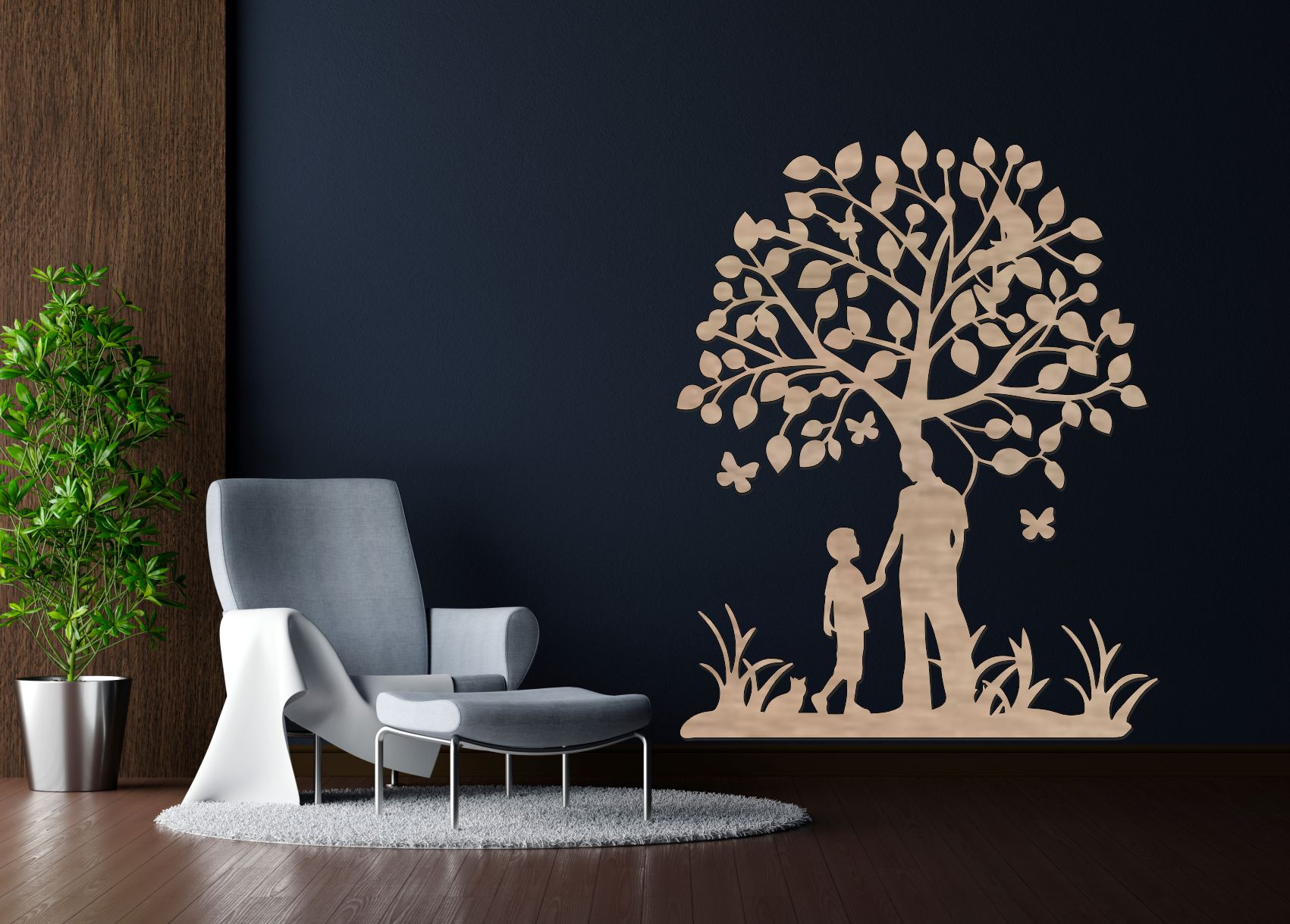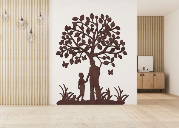 🌳 Drevený strom života na stenu – Otec a syn je emotívna nástenná dekorácia, ktorá symbolizuje silné rodinné puto medzi rodičom a dieťaťom. Silueta otca a syna stojacich pod stromom života predstavuje ochranu, vedenie a vzájomnú dôveru. Tento drevený strom života tak nie je len dekoráciou, ale aj symbolom rodiny, lásky a spoločných životných chvíľ.
