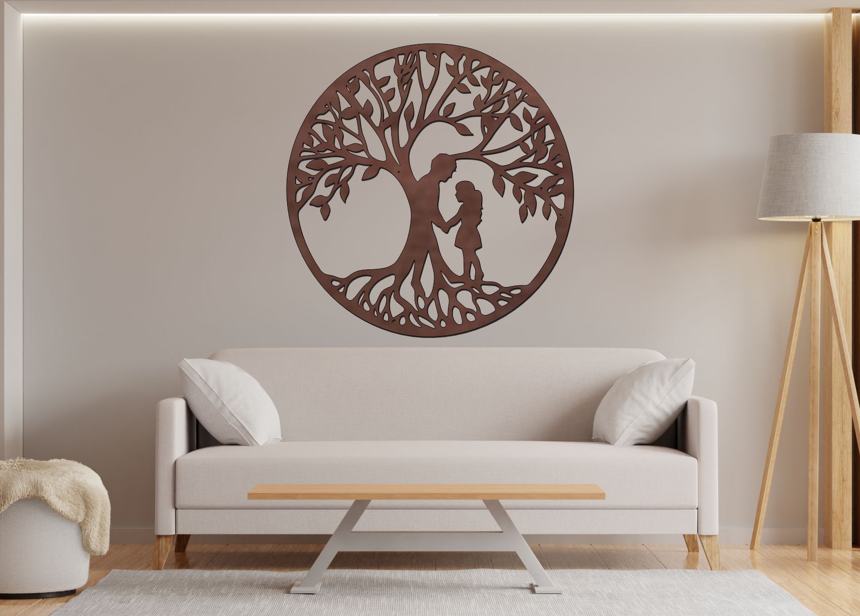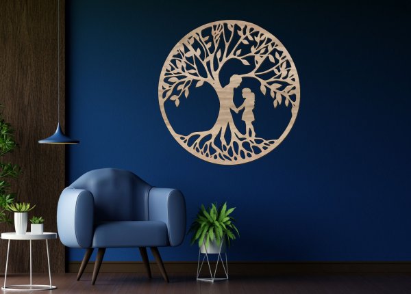 Tento drevený strom života na stenu v sebe nesie hlbokú symboliku rodiny, ochrany a blízkosti. Silueta otca a dcéry zakomponovaná do kmeňa vytvára silný emocionálny prvok, ktorý z tejto dekorácie robí viac než len dizajnový doplnok - stáva sa osobným príbehom na stene.