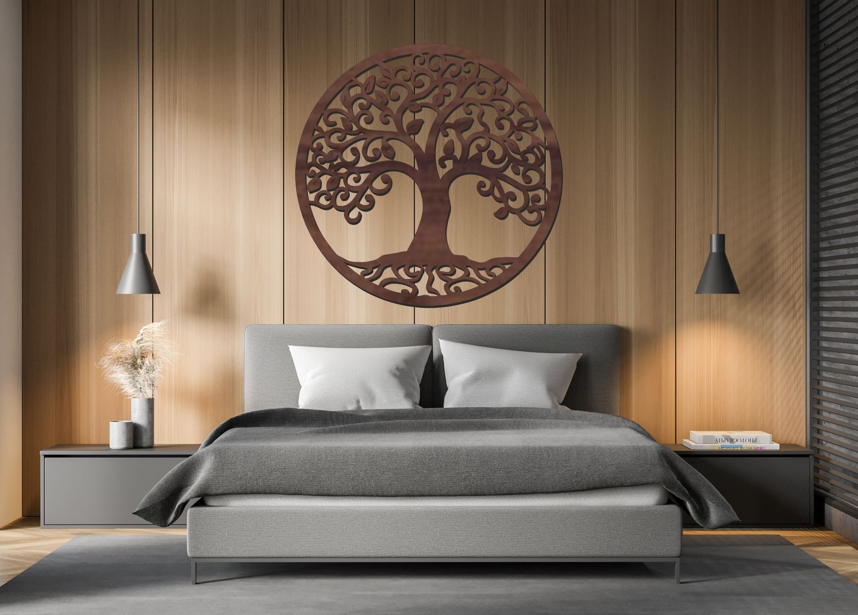 Tento drevený strom života na stenu predstavuje výrazný dekoratívny prvok do moderného aj elegantného interiéru. Bohato zdobené, jemne točené vetvy vytvárajú pocit pohybu, energie a zároveň harmónie. Kruhový rám dodáva kompozícii vyváženosť a pôsobí ako dominantný stred miestnosti.
