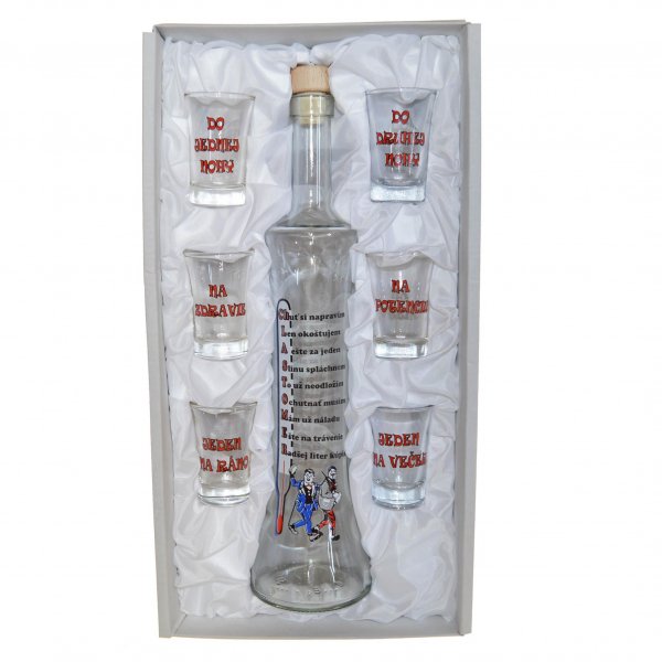 Fľaška 0,5 L so 6 štamperlíkmi.