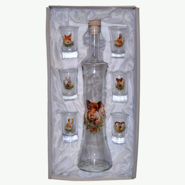Fľaša na alkohol so štamperlíkmi - Diviak