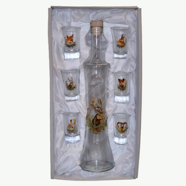 Fľaša na alkohol so štamperlíkmi - Jeleň
