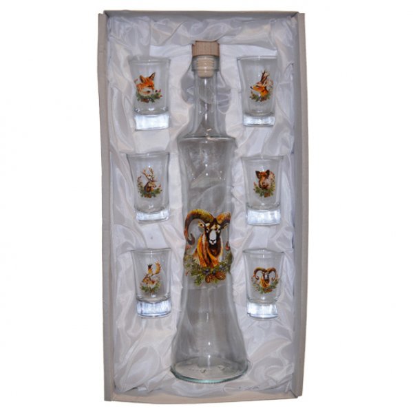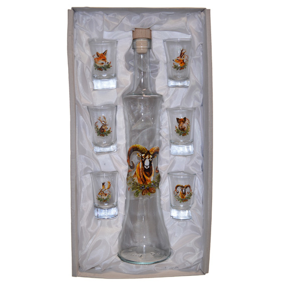 Fľaša na alkohol so štamperlíkmi - Muflón