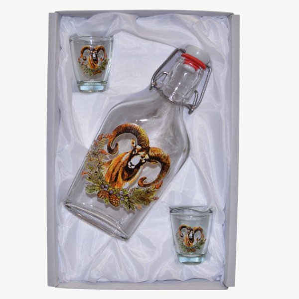 Fľaša na alkohol so štamperlíkmi - Muflón