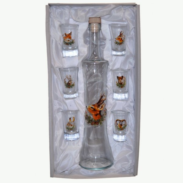 Fľaša na alkohol so štamperlíkmi - Srnec