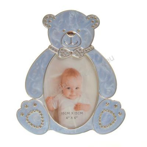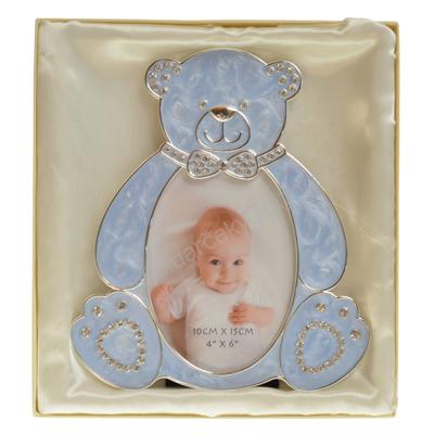 Fotorámik macko vhodný ako darček k narodeniu chlapca v darčekovej krabičke.