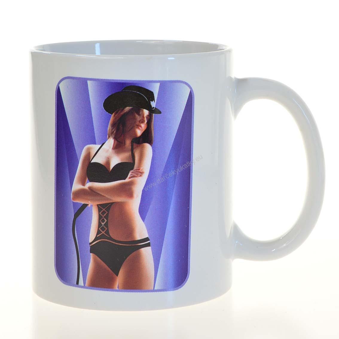 Hrnček znázorňuje sexy ženu, ktorej intímne partie zakrýva práve termocitlivá farba. Tá po kontakte s teplou vodou, kávou či čajom zmizne a odhalí zvodné telo bez akýchkoľvek tajností.